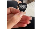 kovová placka, odznak nebo taky button průměr téhle placky je 58 mm, velká je tak zhruba jako kreditka na zadní straně je spínací špendlík